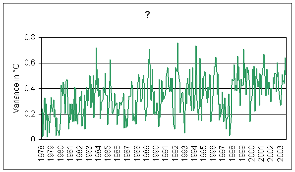 We're remaining within the surface-lower troposphere zone here, there are no scale tricks involved, no inversions and we're specifically dealing with temperature anomalies (big clue considering "Variance in °C" is our value axis label) so there's no need to wonder about atmospheric CO2 levels - remember that graph looked like this: