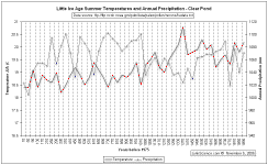 prominent feature of the record is a period of elevated summer temperatures from 1200-1375 AD, followed by cooler conditions from 1375-1820 AD, coincident with