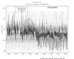 Look at the Climate Monitoring & Diagnostics Laboratory South Polar total ozone graphic at right and note the interesting steps in apparent mean values.