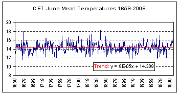Seems to be a lot of comment regarding June temperatures in England, so, here's a couple of quick "June facts" from the CET record: