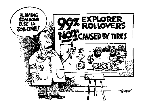 Since only 1 percent of Explorer rollovers involve tire failures, most of the responsibility for reducing rollover accidents rests with Ford. Nasser, his company and all of us would be better off if Ford devoted far less effort to ducking its responsibility and far more effort to building safer Explorers.